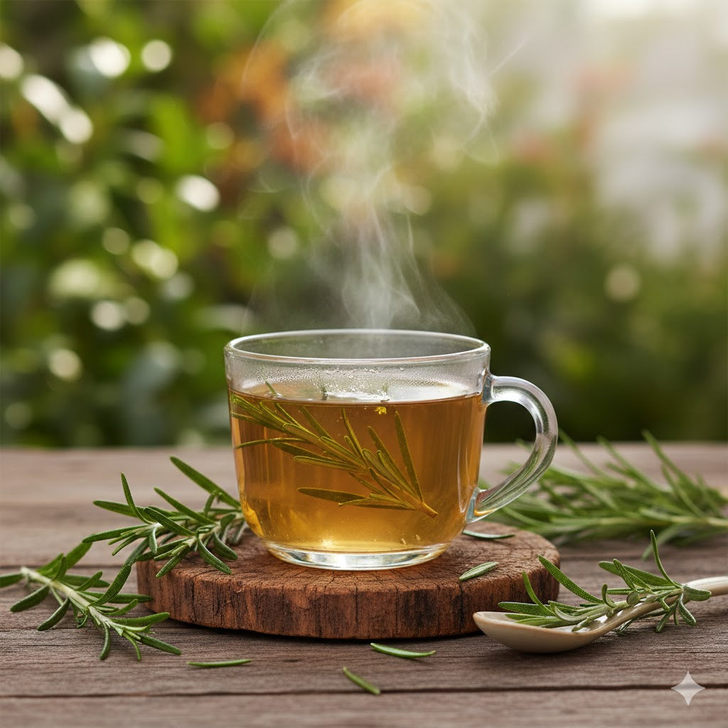 Rosemary Tea is a herbal infusion made from rosemary leaves. It is caffeine-free and traditionally used to support brain health, digestion, and overall wellness.