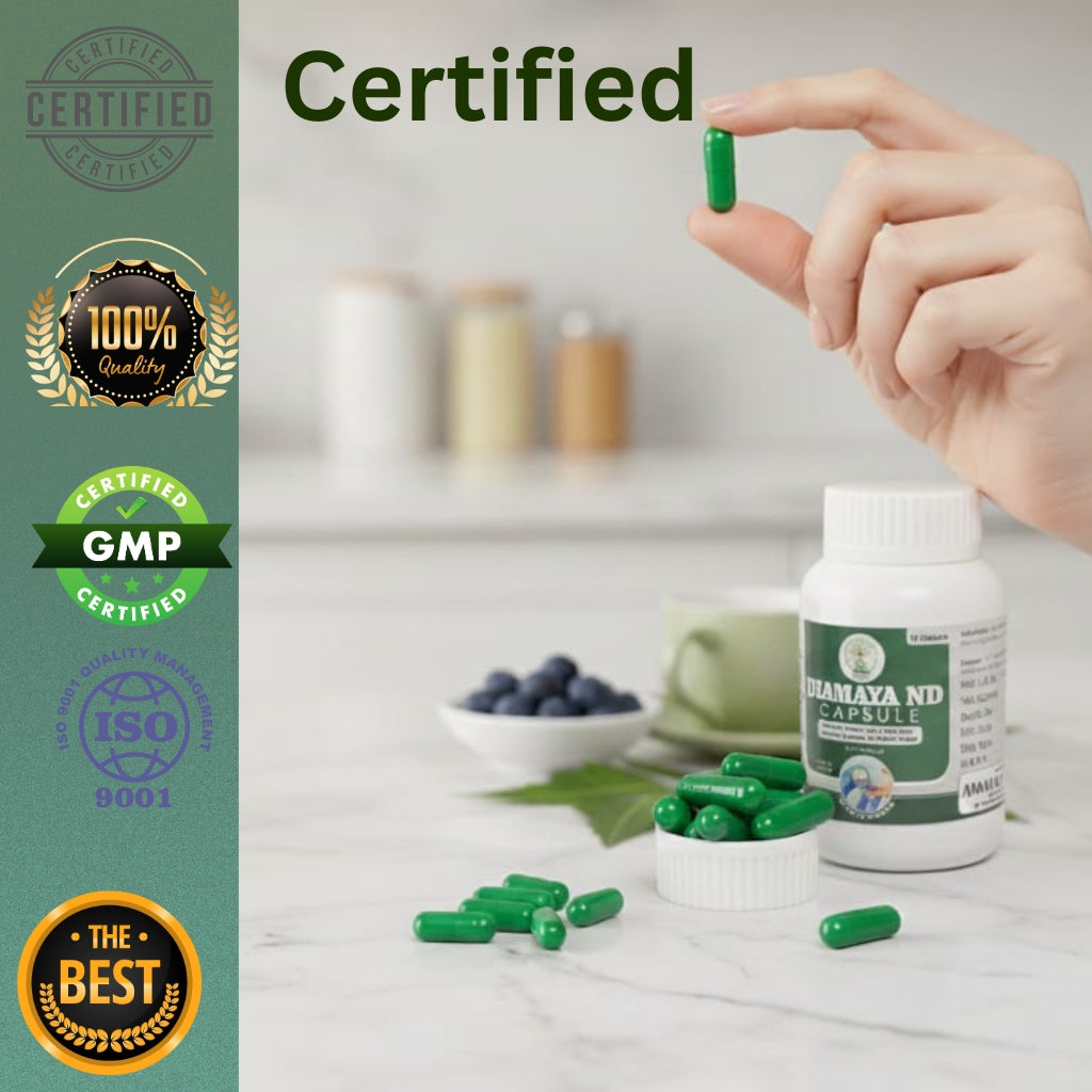 Diamaya ND Capsule is suitable for adults who want natural support for maintaining healthy blood sugar levels and overall metabolic wellness. It is ideal for individuals seeking a herbal supplement as part of a balanced diet and healthy lifestyle. If you are pregnant, nursing, have a medical condition, or are taking medication, consult a healthcare professional before use.
