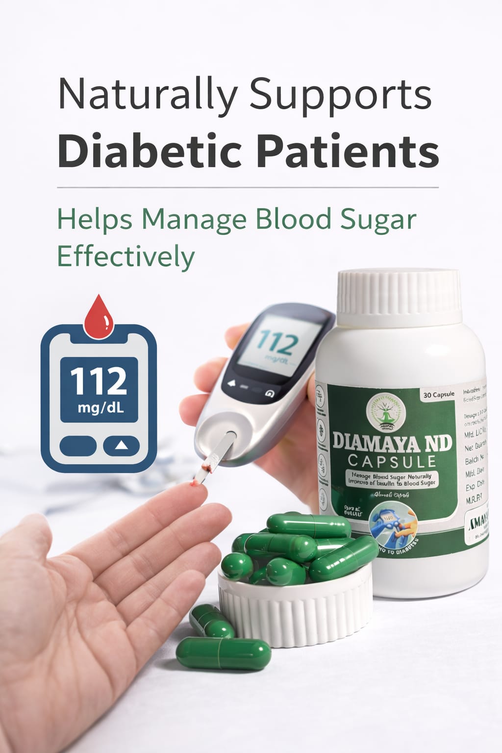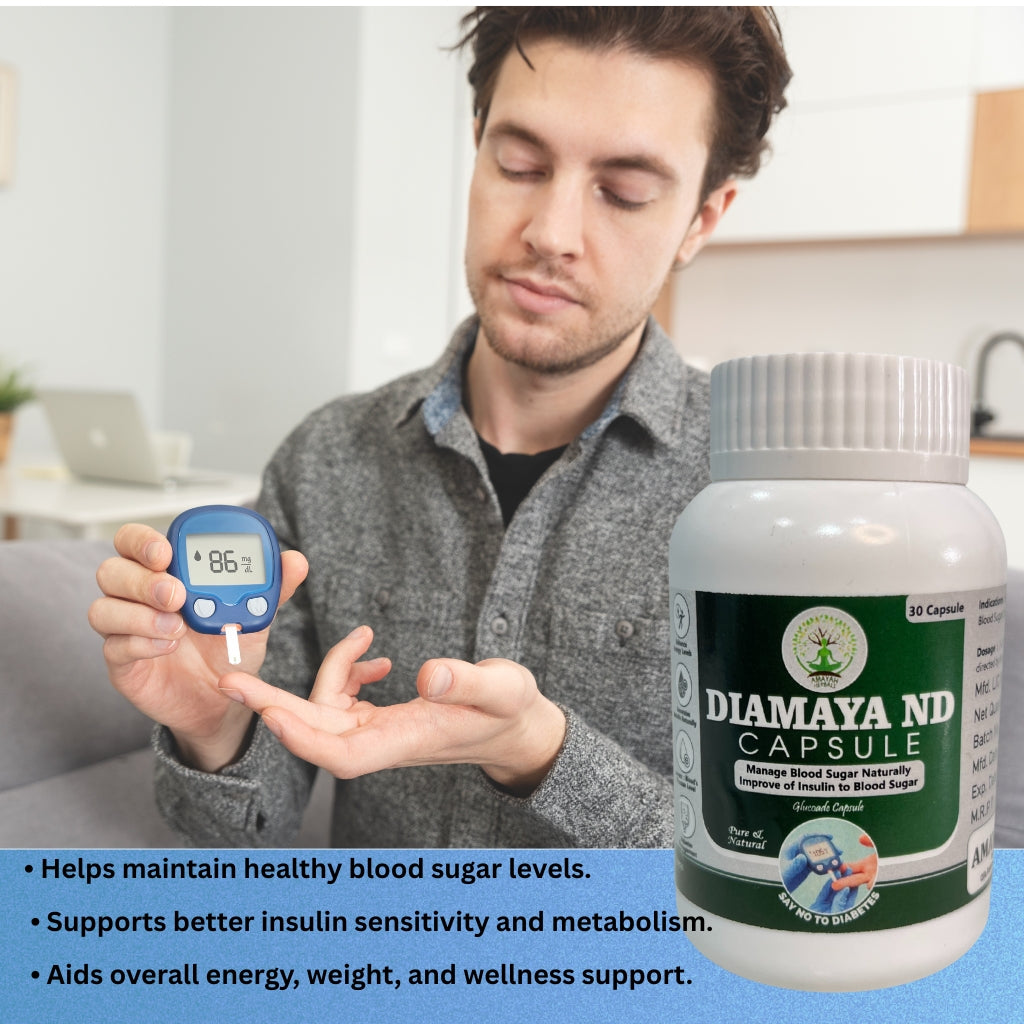 Take a step toward balanced blood sugar and better metabolic health with Diamaya. Our formulation is crafted using time-tested Ayurvedic herbs and prepared under expert guidance. Diamaya is designed to support the body’s natural glucose metabolism, promote healthy insulin function, and improve overall well-being—without harmful chemicals or side effects.Whether you are managing blood sugar levels or aiming for a healthier lifestyle, Diamaya focuses on root-cause support, safety, and consistent results. Trust nature. Trust Diamaya.