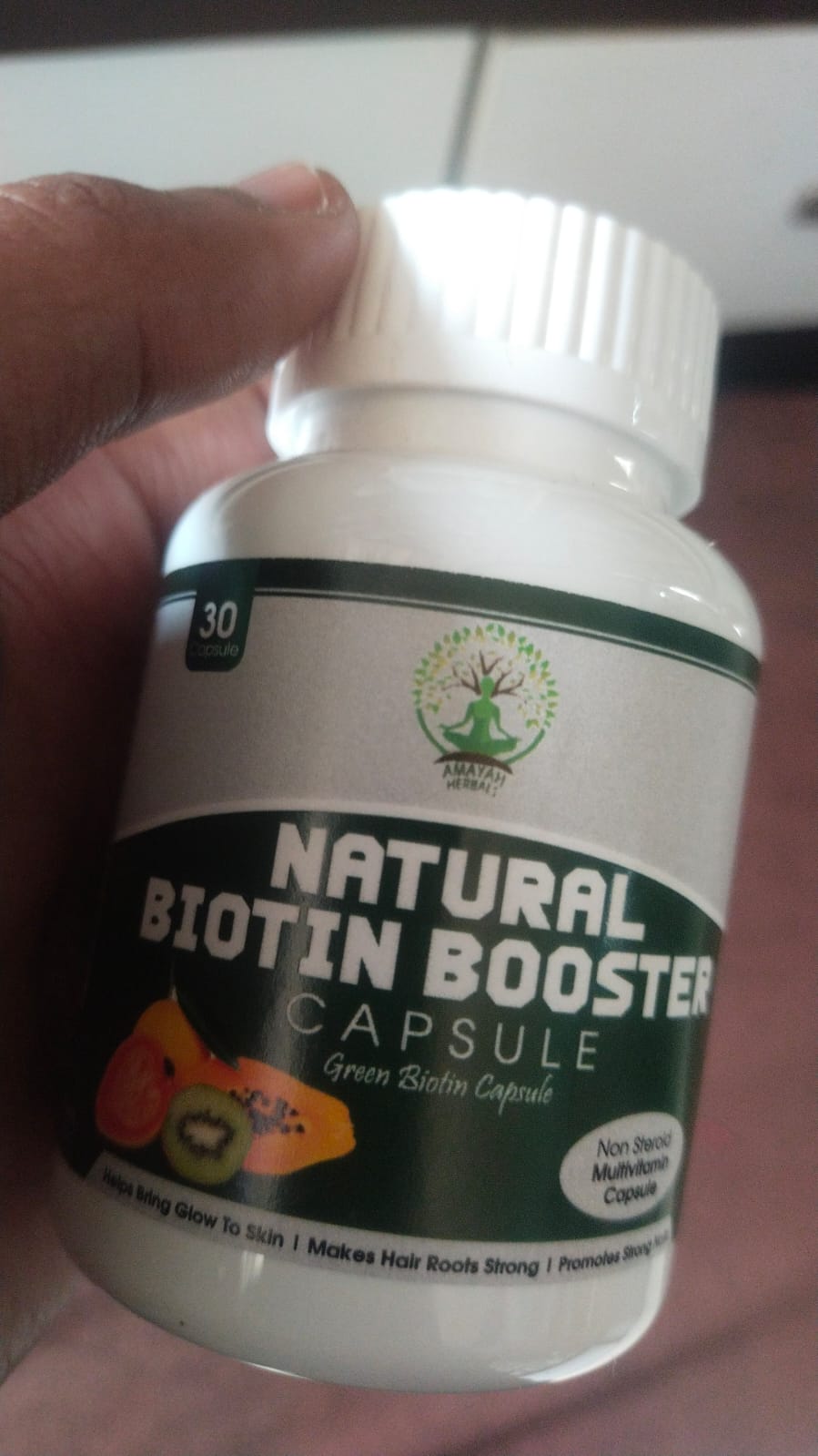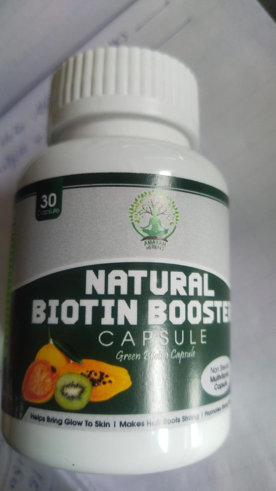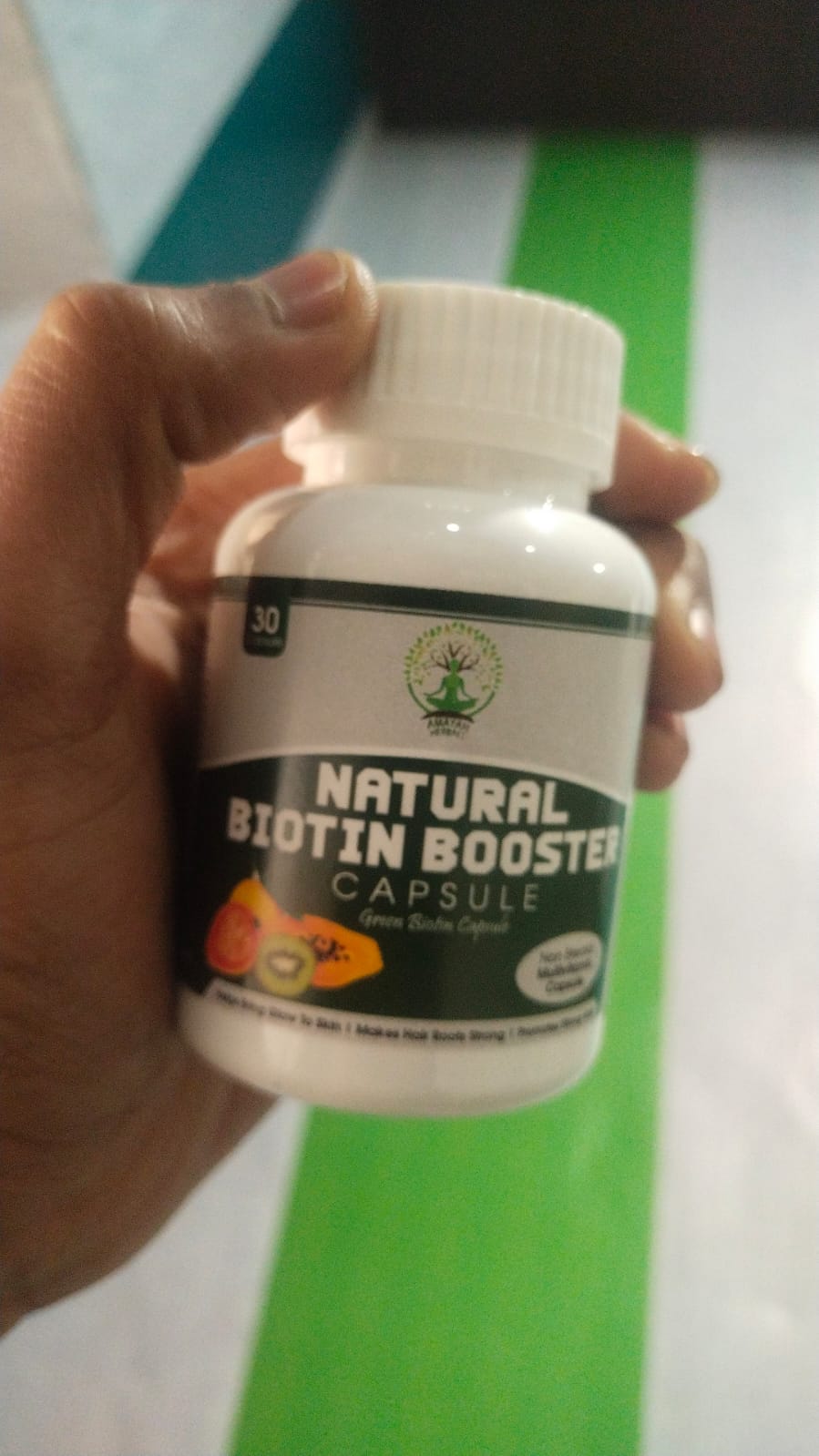 Natural Biotin Booster is an Ayurvedic proprietary medicine made from natural herbs, seeds, roots, and fruits. It is formulated to support healthy hair, strong nails, and glowing skin.